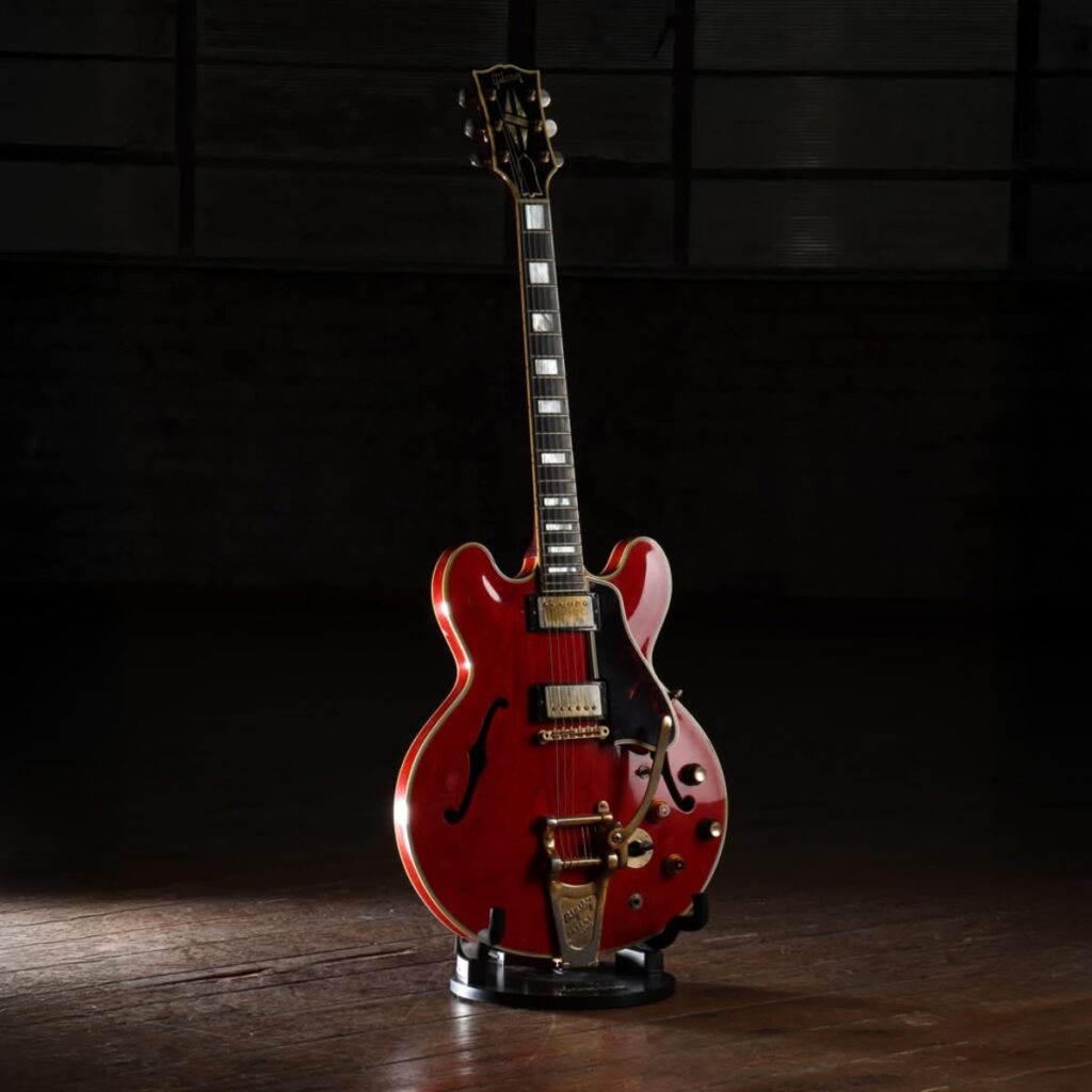 Among the headline items: the cherry red Gibson guitar famously damaged by Liam Gallagher during Oasis’s explosive split in Paris, and John Lennon’s tinted “Lost Weekend” sunglasses worn during his time in Los Angeles. Each piece tells a story raw, rebellious, and unforgettable.