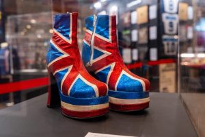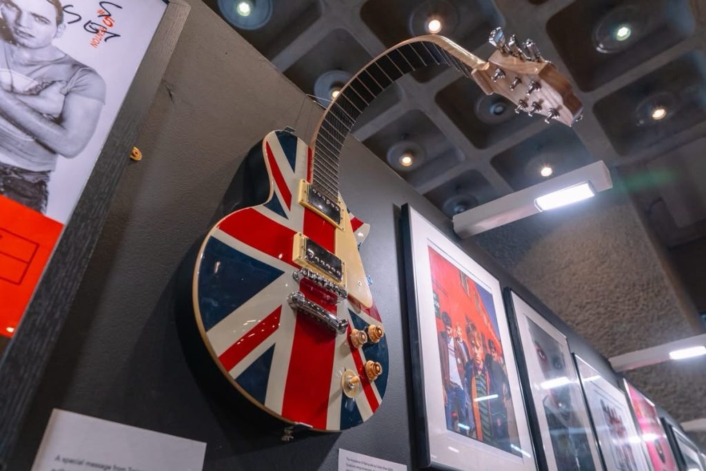 Step into the Barbican Music Library and the 90s feel close enough to touch. The outfits of the Spice Girls glow behind the glass as if they were waiting for the music to start again. Mel B’s legendary leopard print jumpsuit, Geri Halliwell’s Union Jack platform boots, Emma Bunton’s sweet pastel dress. They all look ready to shout girl power one more time. Nearby, Liam Gallagher’s tambourine rests with the same effortless swagger that defined an era. A Brit Award catches the light like a relic from a time when British pop ruled the world without even trying.
